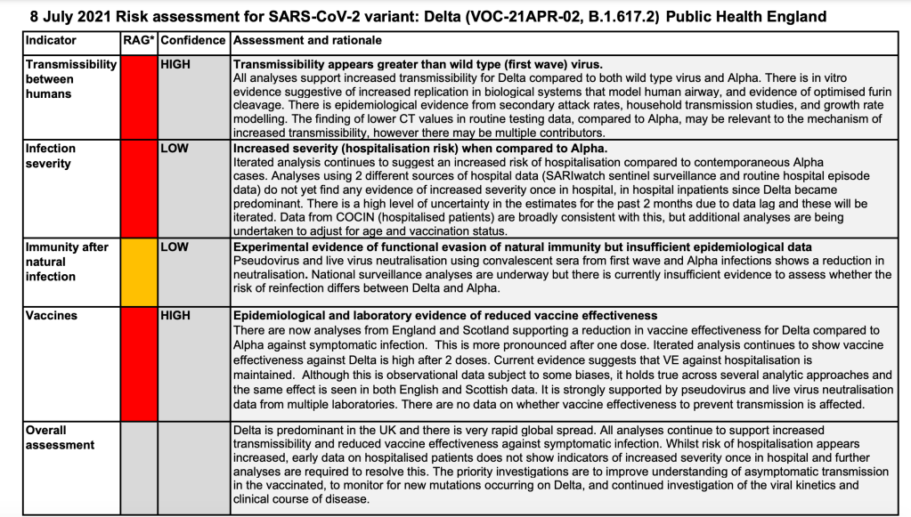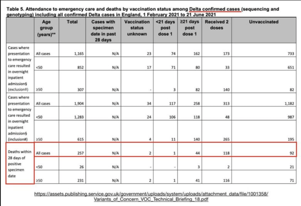 What’s more, a link in the report also shows an analysis of the British government’s data with regard to the Delta variant, which is the predominant COVID variant in the UK, and the conclusion is that, while the variant is more infectious than the previous ones, it is also less severe. Let me repeat that again: it is LESS severe than previous variants. This, as health officials in the US (as well as the media) are sounding the alarm about the Delta variant, characterizing it as being worse than the original.